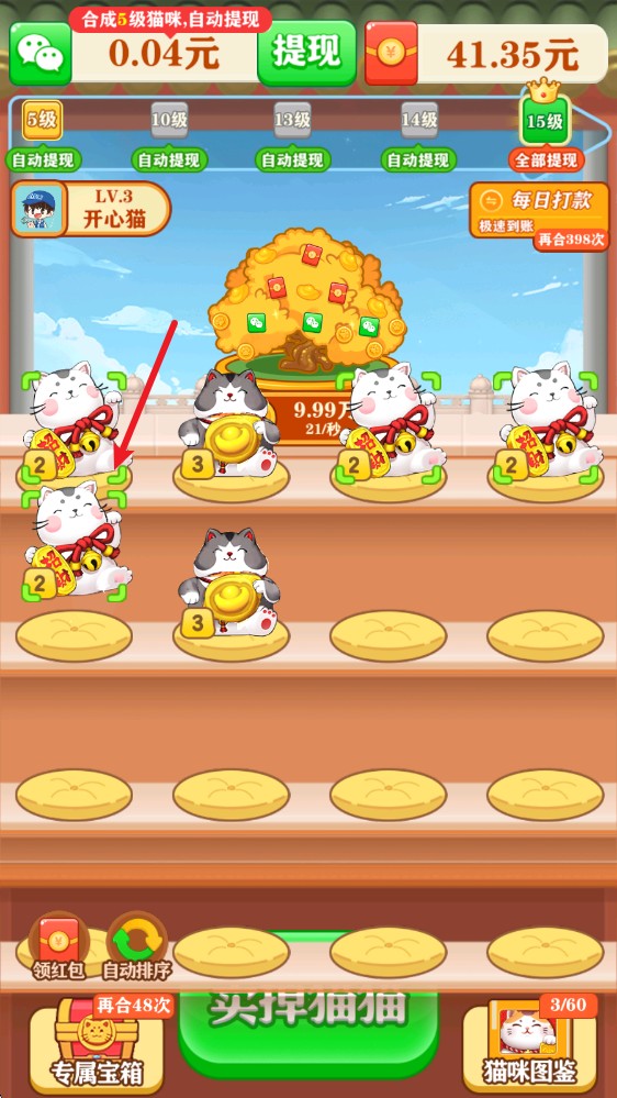 5、随着游戏的进行,可以开启自动合成功能,解放你的双手,轻松合成猫咪。
