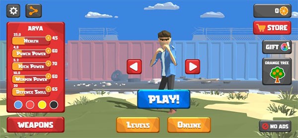 1、下载并进入《街头搏斗》游戏,选择你喜欢的角色,点击“PLAY”按钮即可开始游戏;
