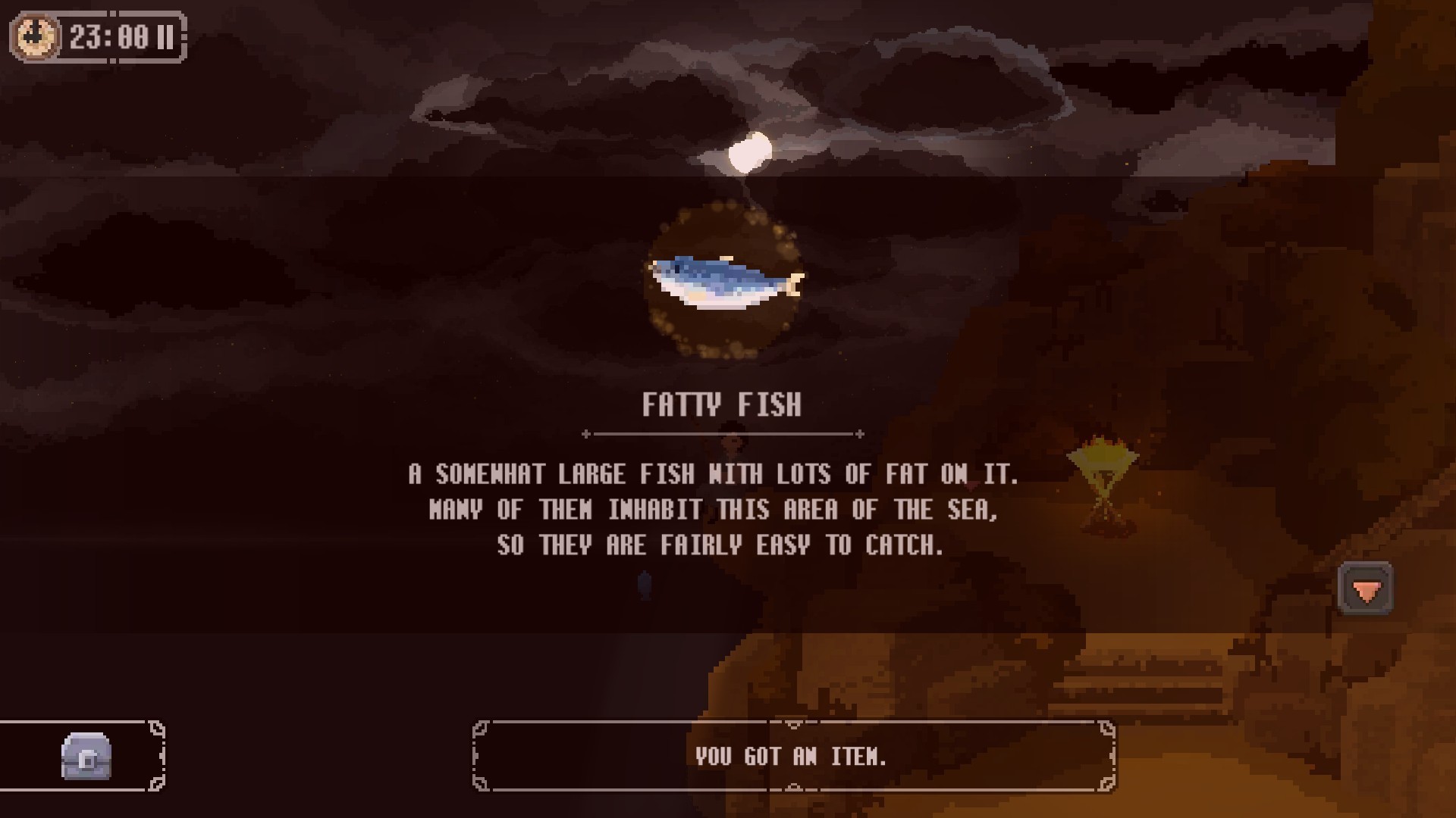 点击背包里的蓝鱼可以制作成鱼油,(再配以孜然胡椒和盐巴,舌尖上的小岛,误)一次只能做一个鱼油,但是能带很多条鱼,接下来的照明会用到鱼油。