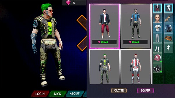 2、游戏开始前,玩家可以自定义角色,这里有丰富的服装和角色可供选择;