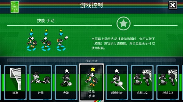 6、射击——按住射击按钮进行踢球,你按住按钮的时间将决定射击的类型、力量、精度;
