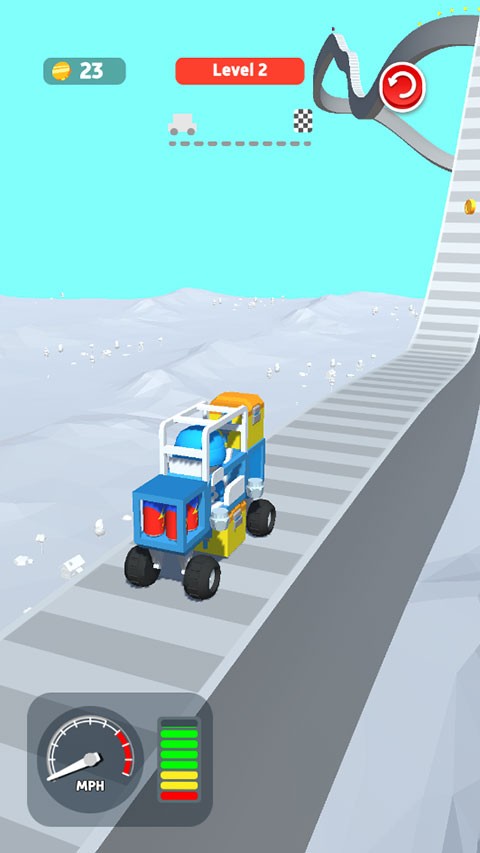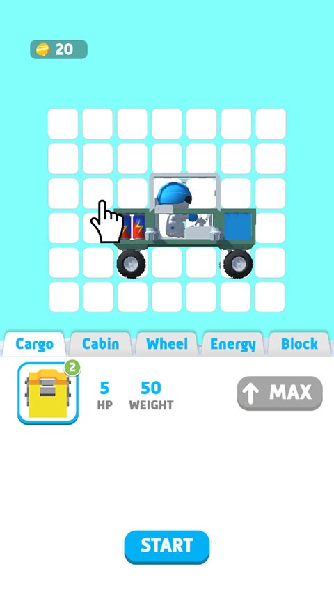 4、获得的小零件可以组装到货车上,点击“START”按钮即可开始下一关;