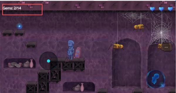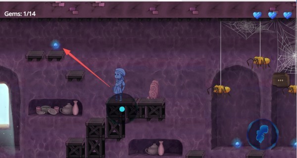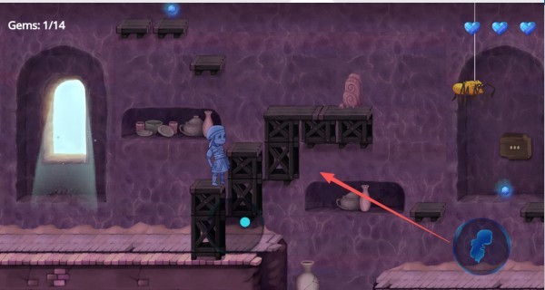 2、操控角色收集物品,并顺利抵达下一个平台。
