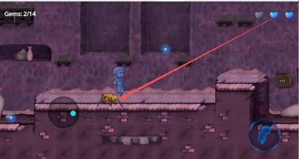 1、通过滑动虚拟摇杆来控制角色移动,点击右侧按钮可执行跳跃操作。