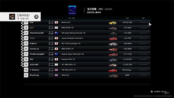 在竞技模式中完成50场竞赛。(Sport模式完成50场比赛即可,断线不算,以系统跳出奖杯为准)